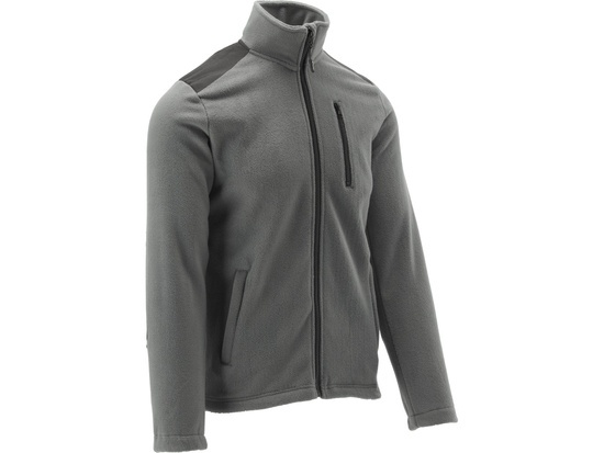 Gruba bluza polarowa z trzema kieszeniami oraz dodatkowymi obszyciami z tkaniny odpornej na przetarcia na łokciach i barkach.