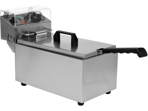 Grzałka o mocy 2,0kW sterowana jest za pomocą potencjometru umieszczonego na panelu sterującym. Możliwe jest ustawienie temperatury pracy w zakresie 60~200℃. Zainstalowane bryzgoszczelny wyłącznik pozwala na wyłączenie urządzenia, bez konieczności odłączania kabla zasilającego z sieci. Dodatkowo panel sterujący posiada osłonę zabezpieczającą wykonaną z bardzo wytrzymałego poliwęglanu, która chroni panel przed zachlapaniem olejem podczas smażenia. Dzięki temu utrzymanie frytownicy w czystości jest znacznie ułatwione. Wyjmowana grzałka ma możliwość powieszenia jej na specjalnym uchwycie w pozycji, w której ściekający olej trafia z powrtotem do zbiornika. Frytownica posiada dodatkowe zbezpieczenie, które automatycznie wyłącza grzałkę w momencie wyciągnięcia jej ze zbiornika. Dodatkowe zabezpieczenie chroni ją przed przegrzaniem, przy temperaturze powyżej 260℃.