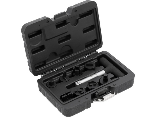 Zestaw kluczy przeznaczonych do bezpiecznego odkręcenia i przykręcenia plastikowych korków oleju. Pokrętło typu T zapewnia odpowiedni moment przykręcania, dzięki czemu korki nie zapiekają się w gwintach misek olejowych. Umożliwia obsługę 8 rodzajów korków w samochodach Audi, BMW, Dodge, Ford, Lincoln, Mercedes i VW.